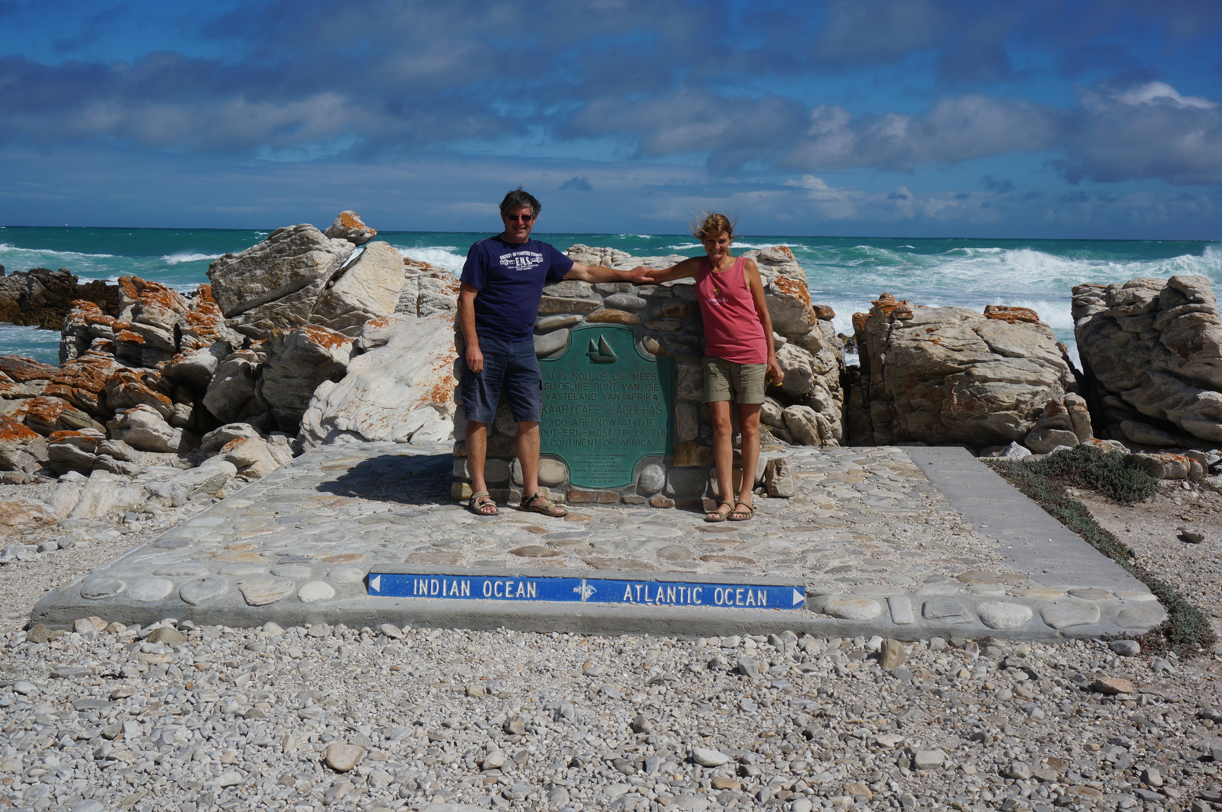 Anyway, more interestingly we got to Cape Agulhas, the true south point of the African continent, (not the Cape of Good Hope as is generally thought). As the official meeting point of the Indian and Atlantic Oceans, Annemarie just has to paddle either side of the mark to have been in each. Although the 2 have a near 10 degree temperature differential, she was sadly unable to tell the difference…..