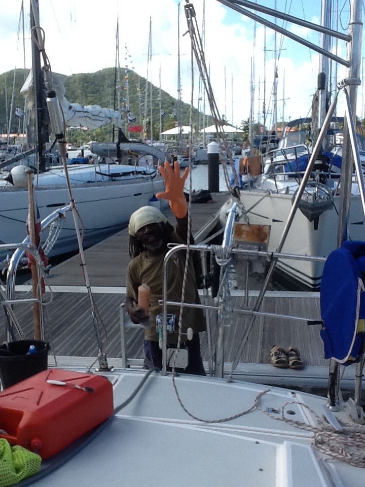 There is something slightly surreal about it being only 2 days to Christmas, and it being 30 degrees. As I write this, there is a reggae boom-box hammering out its beat on the spray hood whilst it’s owner and his lady clean and polish the boat for us. Vision is one happy man, singing out to the music as he works.