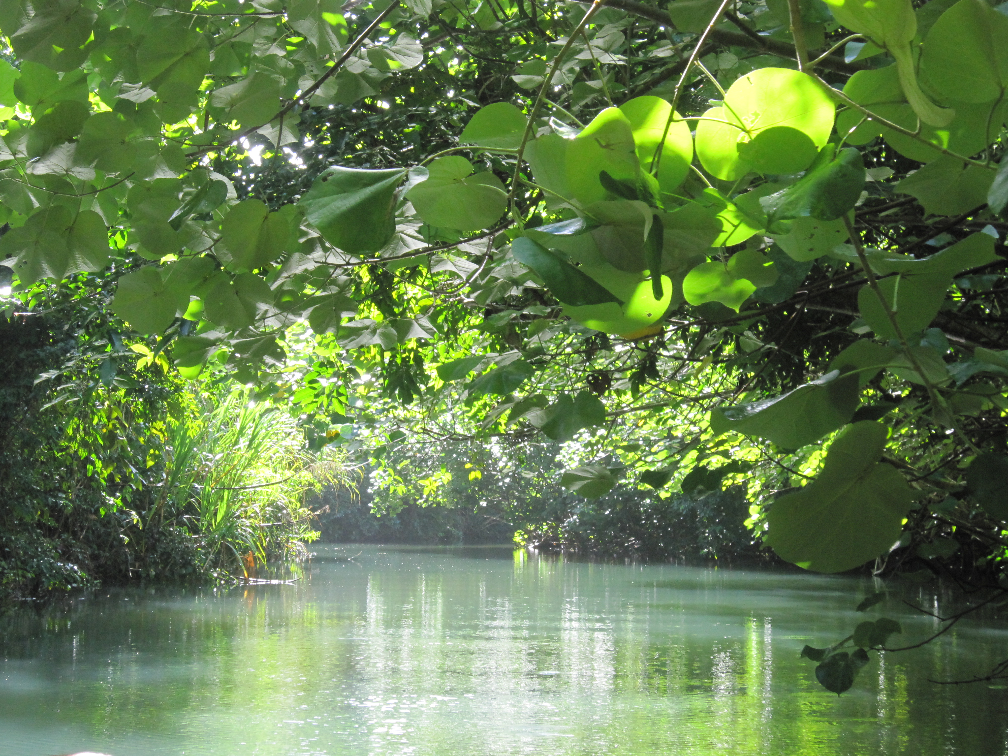 It is good to see that safety lessons are taken very seriously by cruise lines. Clearly wary of the risk of their boats coming too close to shore and striking a tree root, the Costa (Concordia) Line had its passengers wear full lifejackets on the trip up the creek. Perhaps of limited benefit where the water may only be knee deep…….