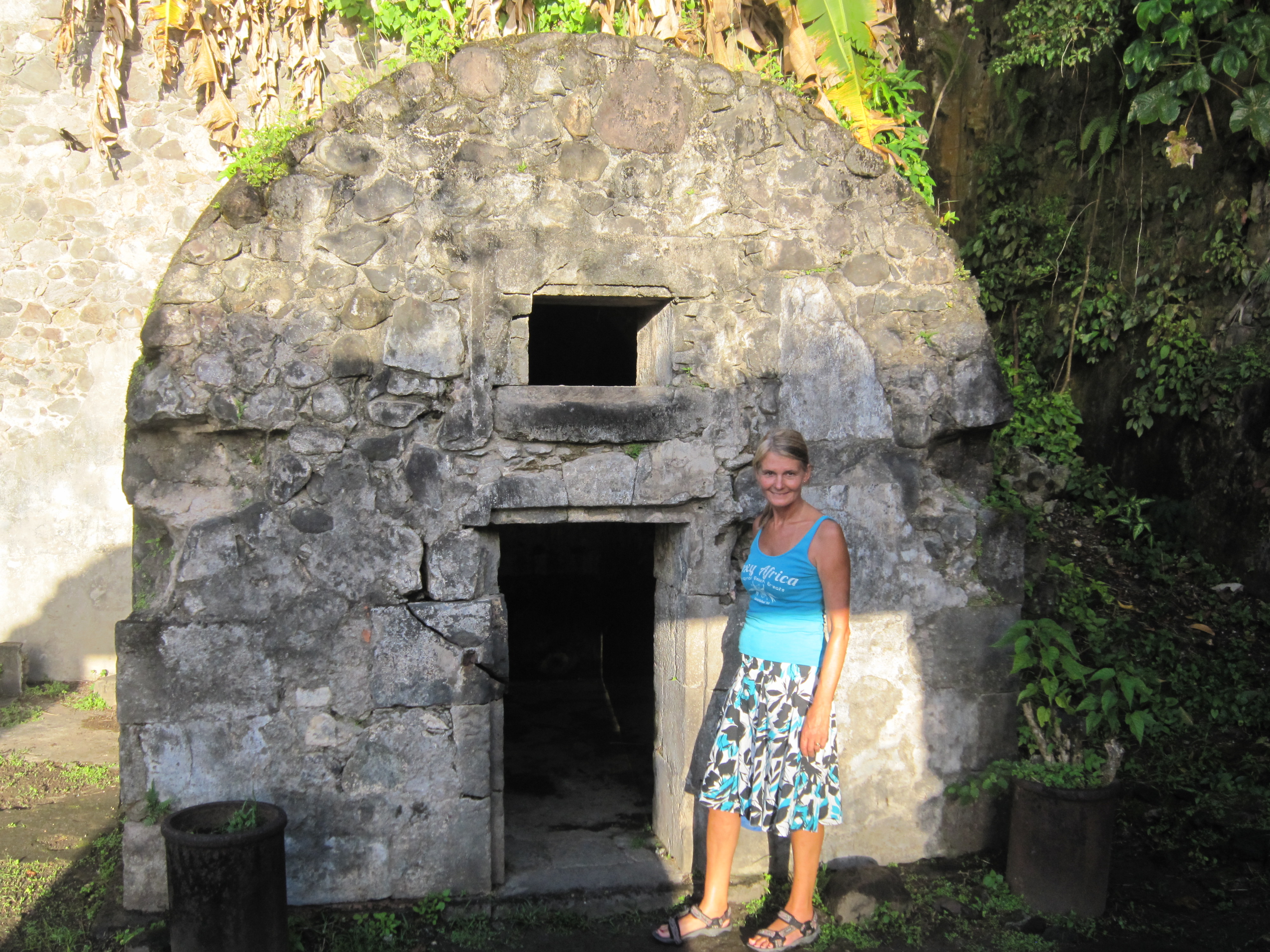 Just over 100 years ago, this town at the north-western tip of Martinique was the capital of the island. Only a few days after a ‘Michael Fish’ pronouncement of continued dormancy by a volcanologist, there was a devastating eruption that destroyed the town with the loss of the population. It was recorded that only 2 people survived, most notably a prisoner in the local jail. His cell can be seen in the photo.