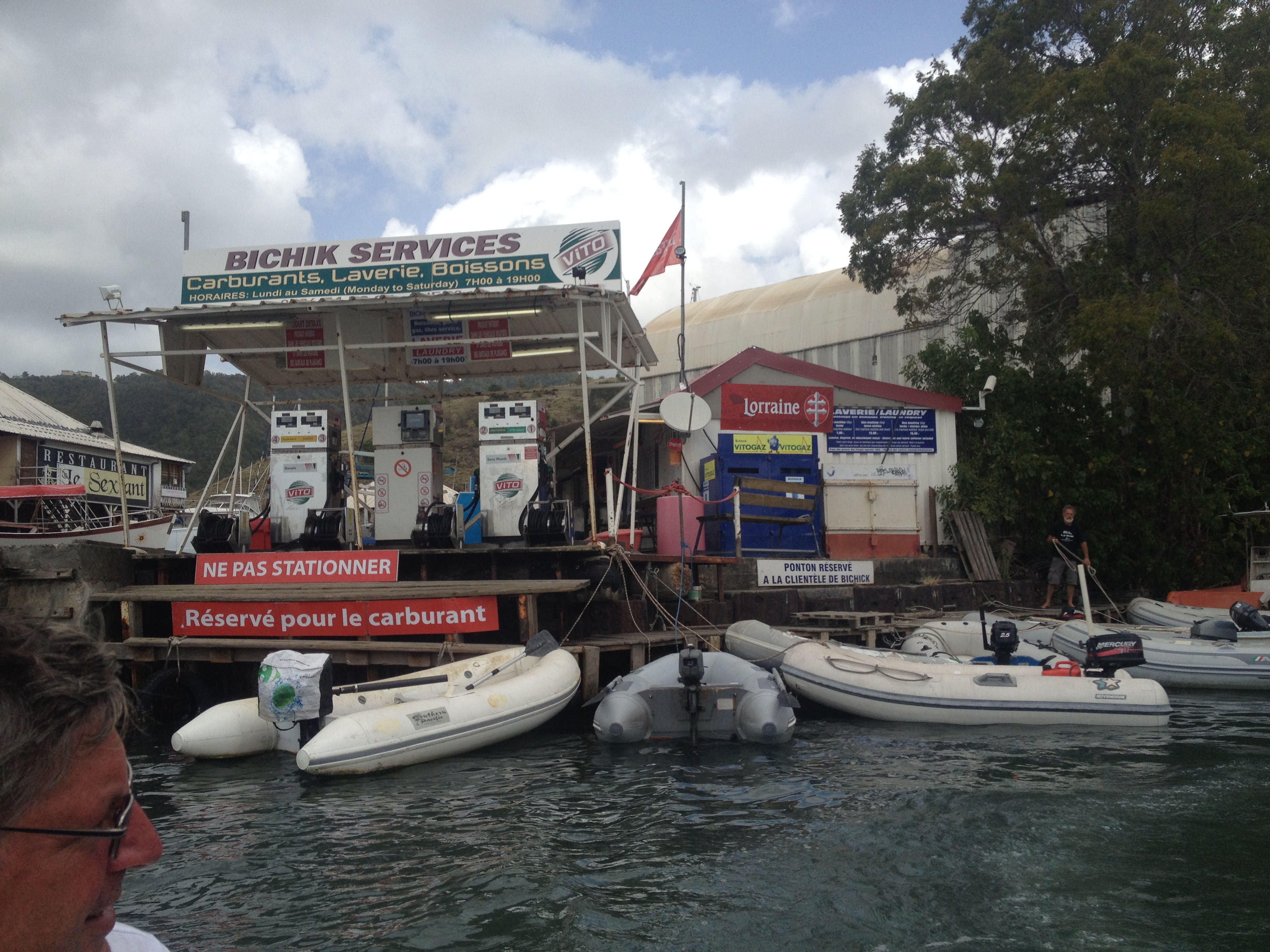 As you may have gathered, buying and keeping food has been a bit of a learning curve, not least working out what some things are and how to cook/eat them. Also summoning up the courage to use our beautiful tartan granny trolley (surprisingly no photos on this, though it was tempting when Steve and Rod of Charlotta were standing in Carrefour with their trolleys!). However it is essential at times particularly when stocking up on booze! (NB, this is our second one, the first collapsed under the weight of wine bottles from a French supermarket!) One enterprising supermarket in Martinique has its own dinghy dock, a bit like Sainsbury’s, except boats not cars…