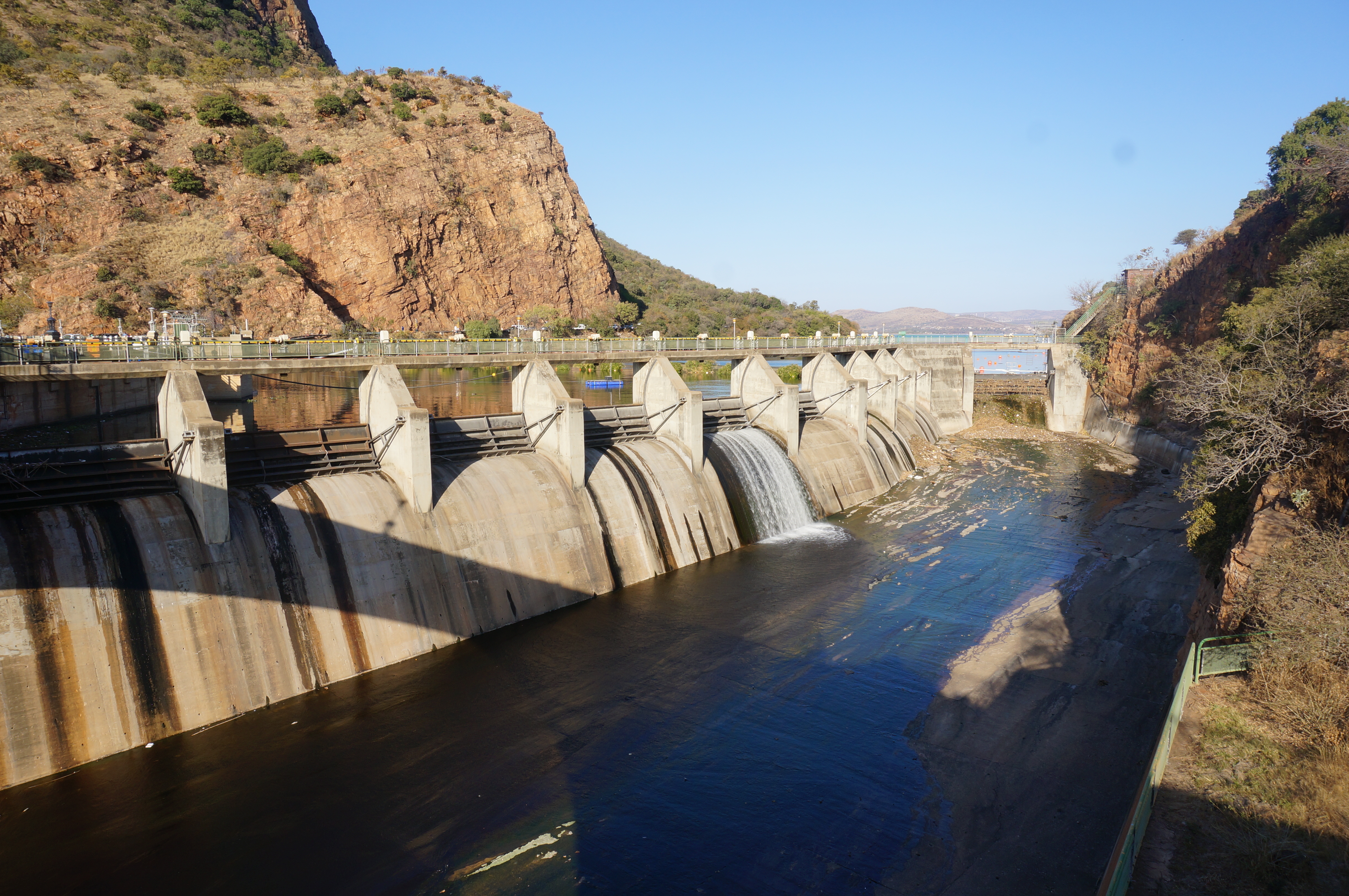 Taking a different route back, the road to Hartbeespoort saw a noticeable transition in to Afrikaaner country, the business and road signs being the most obvious clues. The town is built next to a huge, very picturesque reservoir. The head of this water is a small steep dam, over which there is a single track road. As this is governed by a very slow set of traffic signals, the African entrepreneurs are very active in trying to part their stationary audience from their money with all sorts of ‘enticing’ merchandice. But beside the hats, fruits and sunglasses, a new phenomenon was seen. This was the sight of white folk begging.