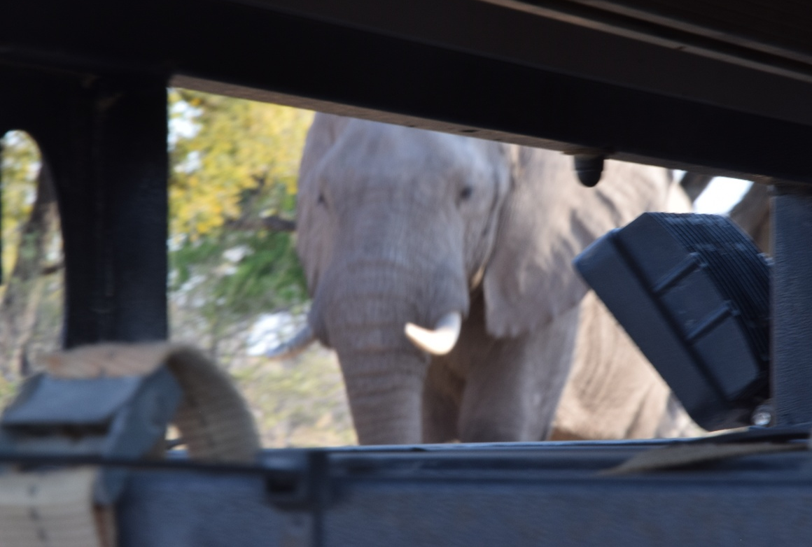 After breakfast, the trailer is unhooked, (with a quiet prayer that the baboons don’t get too inquisitive whilst we are out), and we go out on a game drive. (They clambered over the next tent, and stole the cutlery from a third!). Essentially, you follow tracks around, often close to waterholes, and keep hopeful as to what you might see.