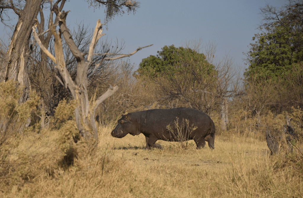 We retired for the night only to be woken by a very noisy hippo wandering very slowly through our pitch. Being about 4m apart, up in our elevated tent, it was fine, but we felt for the next group in ground tents!