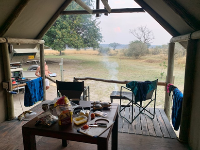 Each camp site came with its own large platformed tent, complete with bathroom facilities, seating/dining/food prep area, and there was a restaurant, bar and swimming pool. All overlooking the Chobe river and the animals wandering the river plain.